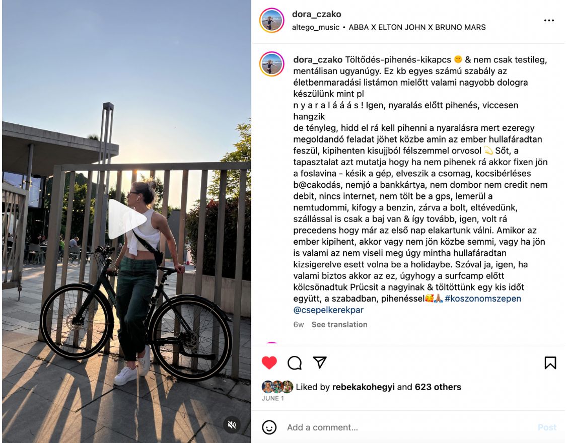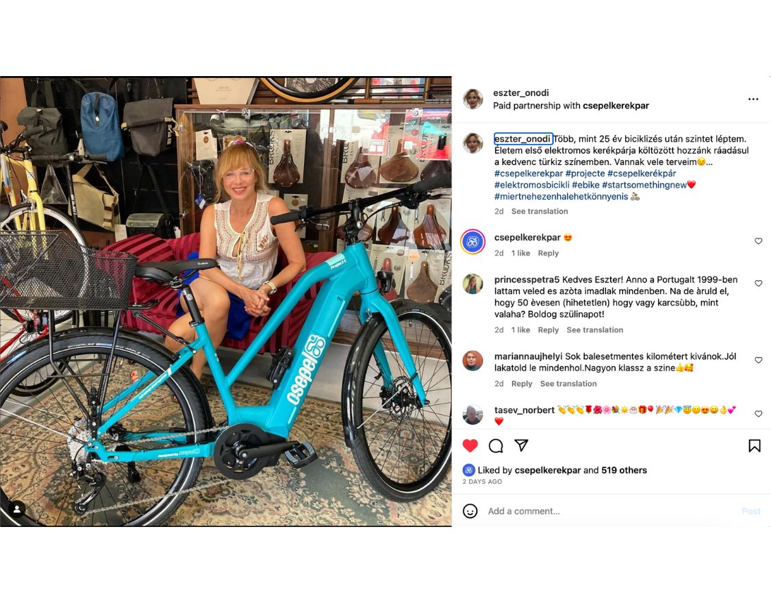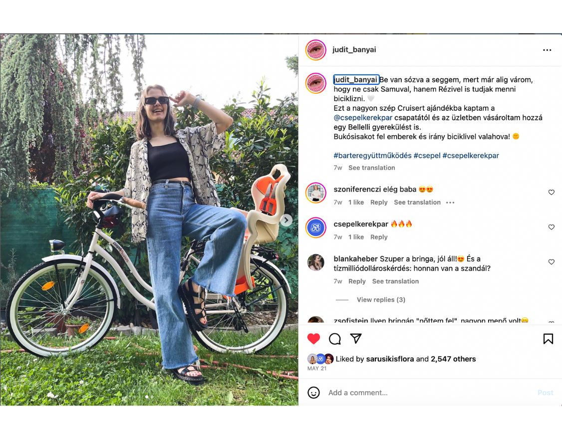 A stratégiát úgy alakítottuk ki, hogy a kiválasztott influencerek – Lengyel Eszter, Czakó Dóra, Bányai Judit és Ónodi Eszter – közösségi média jelenléte összhangban legyen a Csepel Kerékpár értékeivel és termékeivel.